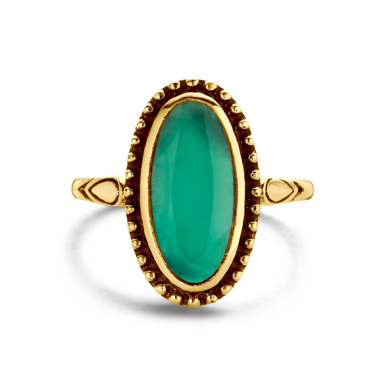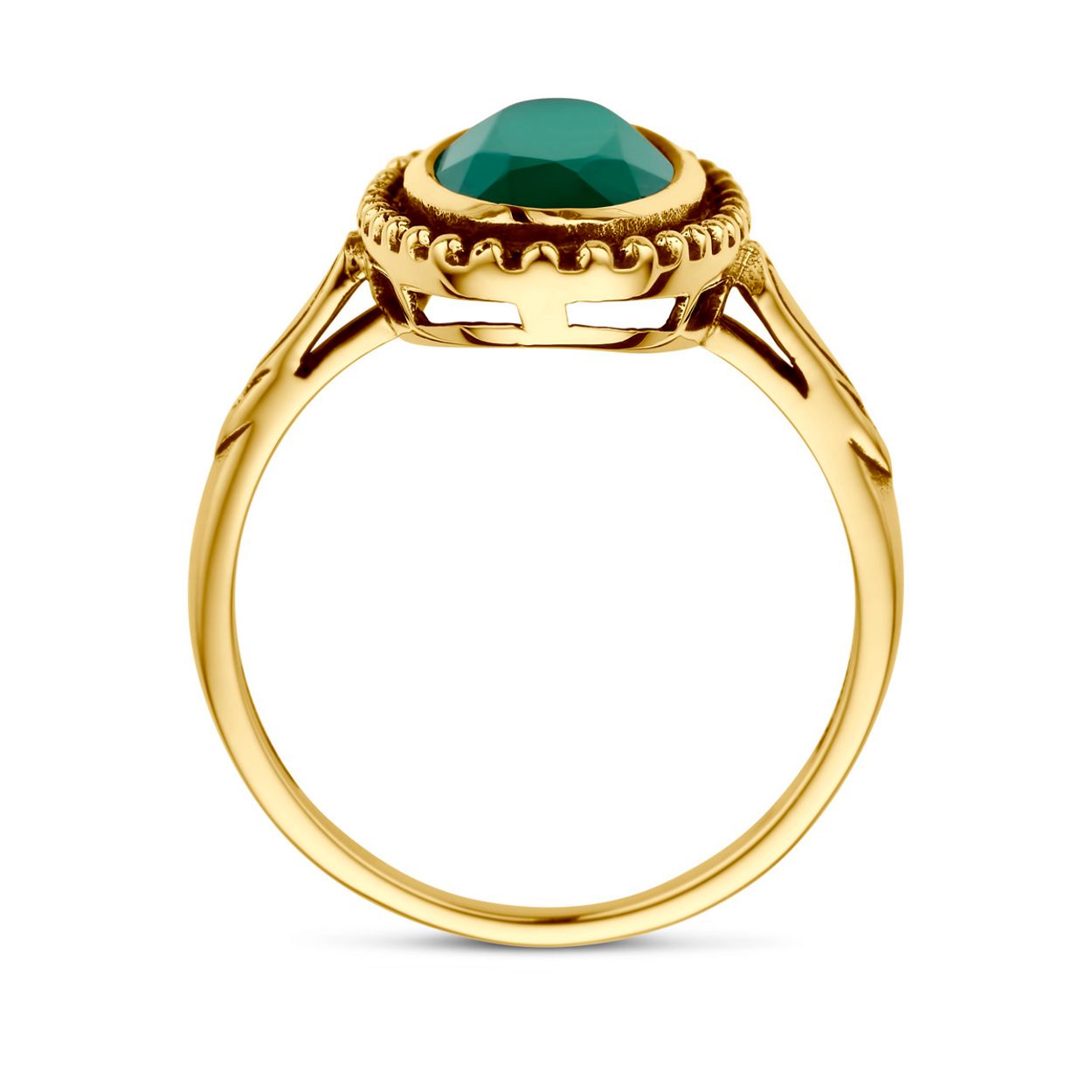 14k Geelgouden vintage ring uitgevoerd met groen agaat. De ring heeft een afmeting van 18x10.5mm.