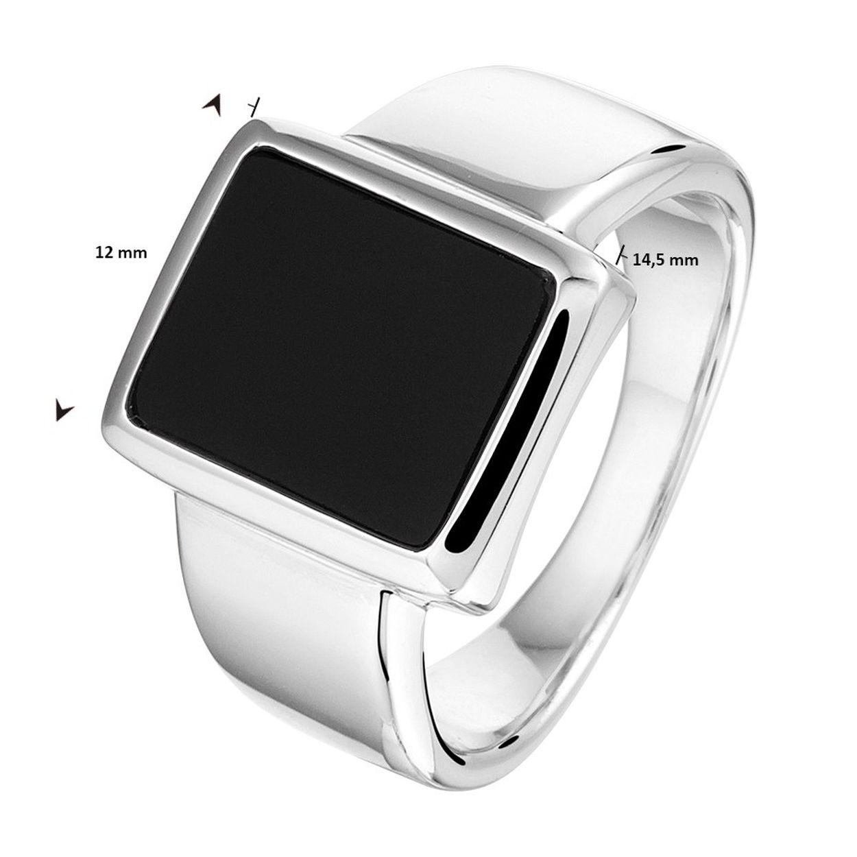 Gerhodineerd 925 zilveren zegelring uitgevoerd met een schitterende onyx. De ring heeft een breedte van 12mm.