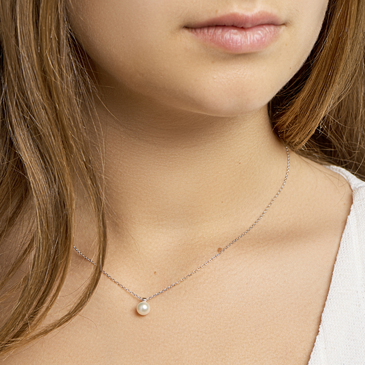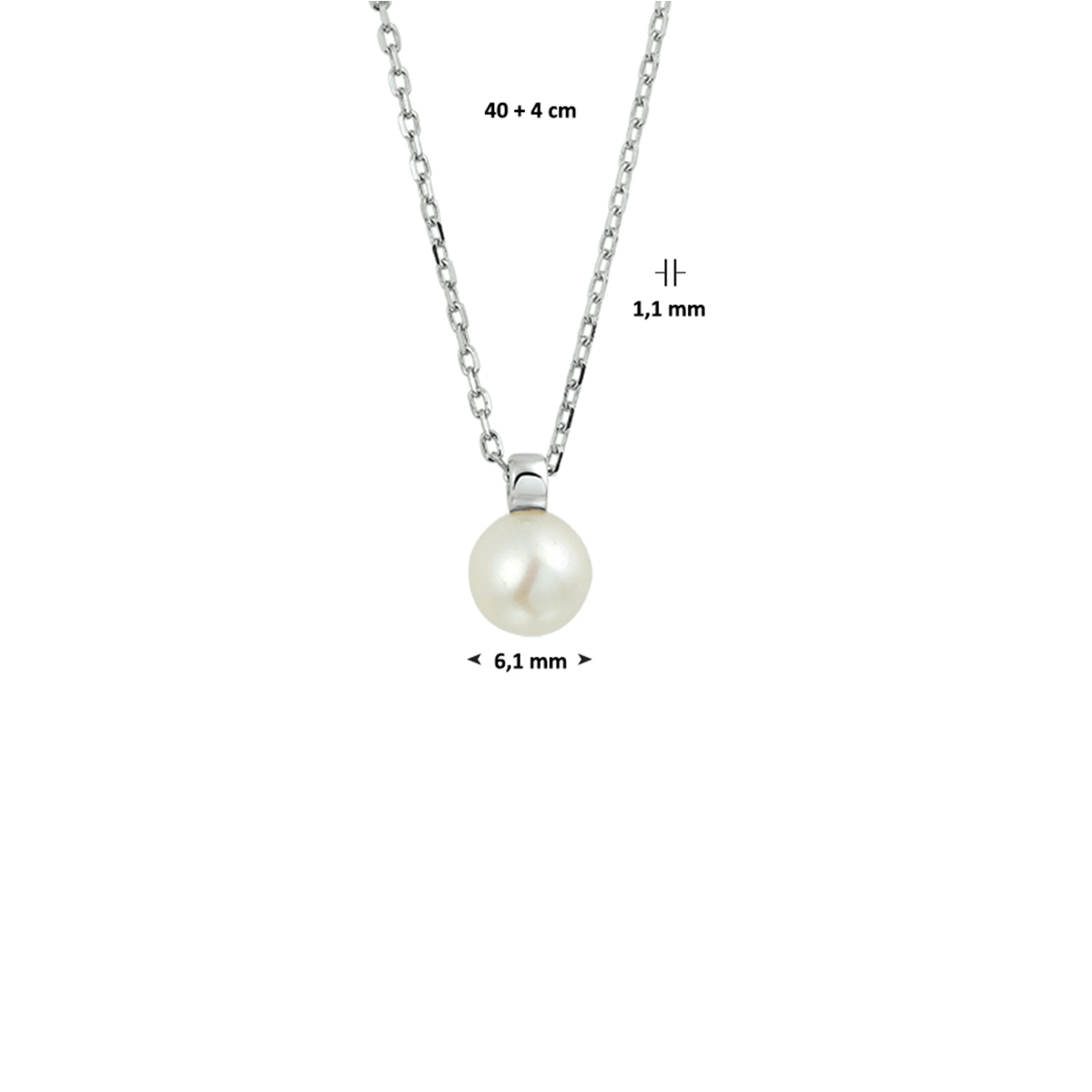 Klassiek gerhodineerd zilveren anker collier met een draaglengte van 40cm met een extensie van 4cm. Uitgevoerd met een zoetwaterparel van 6mm. Het collier is een prachtige basis voor een klassieke chique look en uit te breiden met parel sieraden uit onze collectie voor een perfecte klassieke uitstraling.