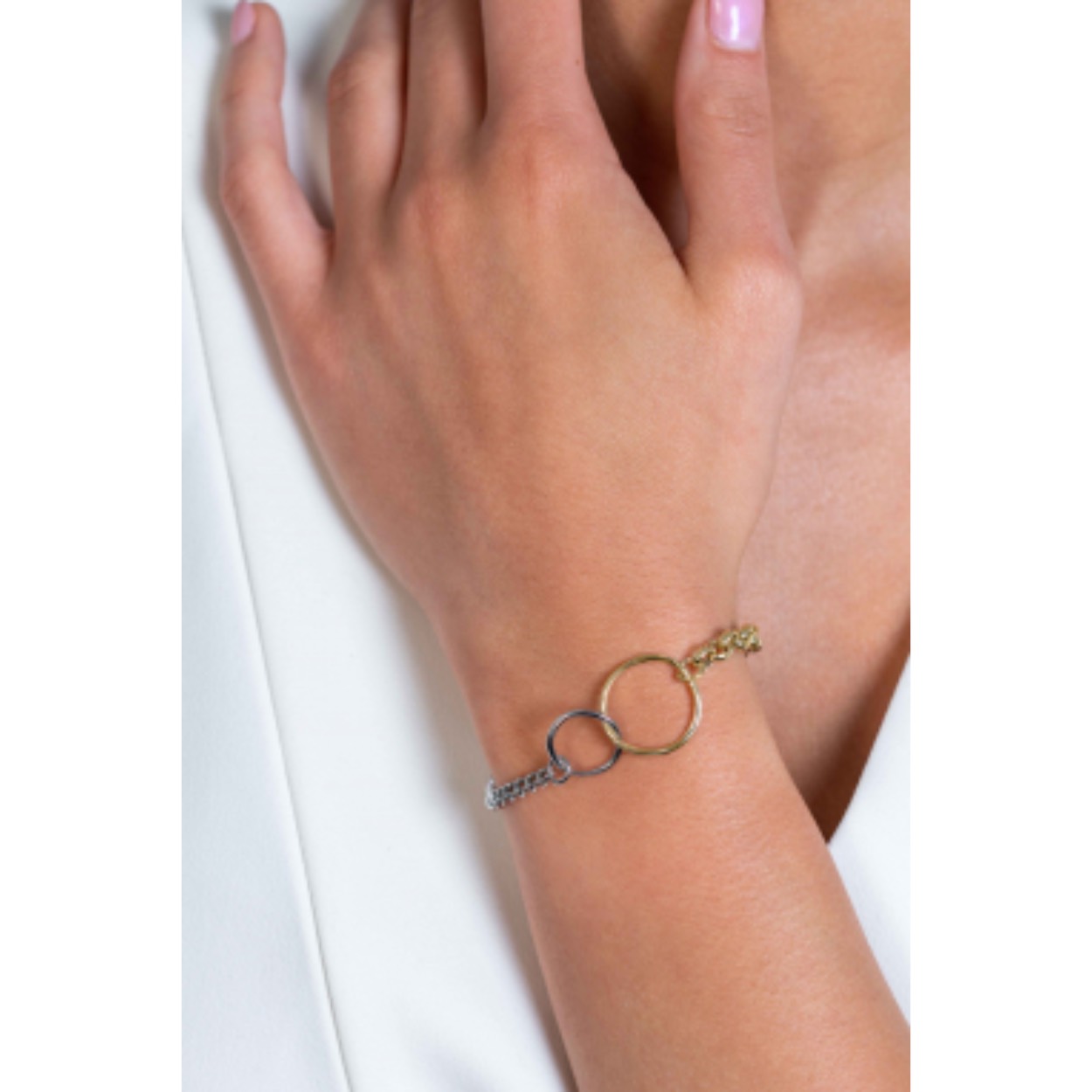 Zinzi zilveren armband met trendy gourmet en gold plated jasseron schakels, verbonden door ronde vormen in elkaar 17-20cm