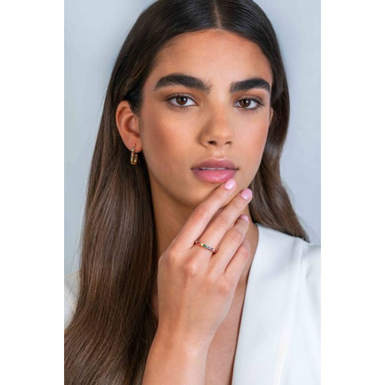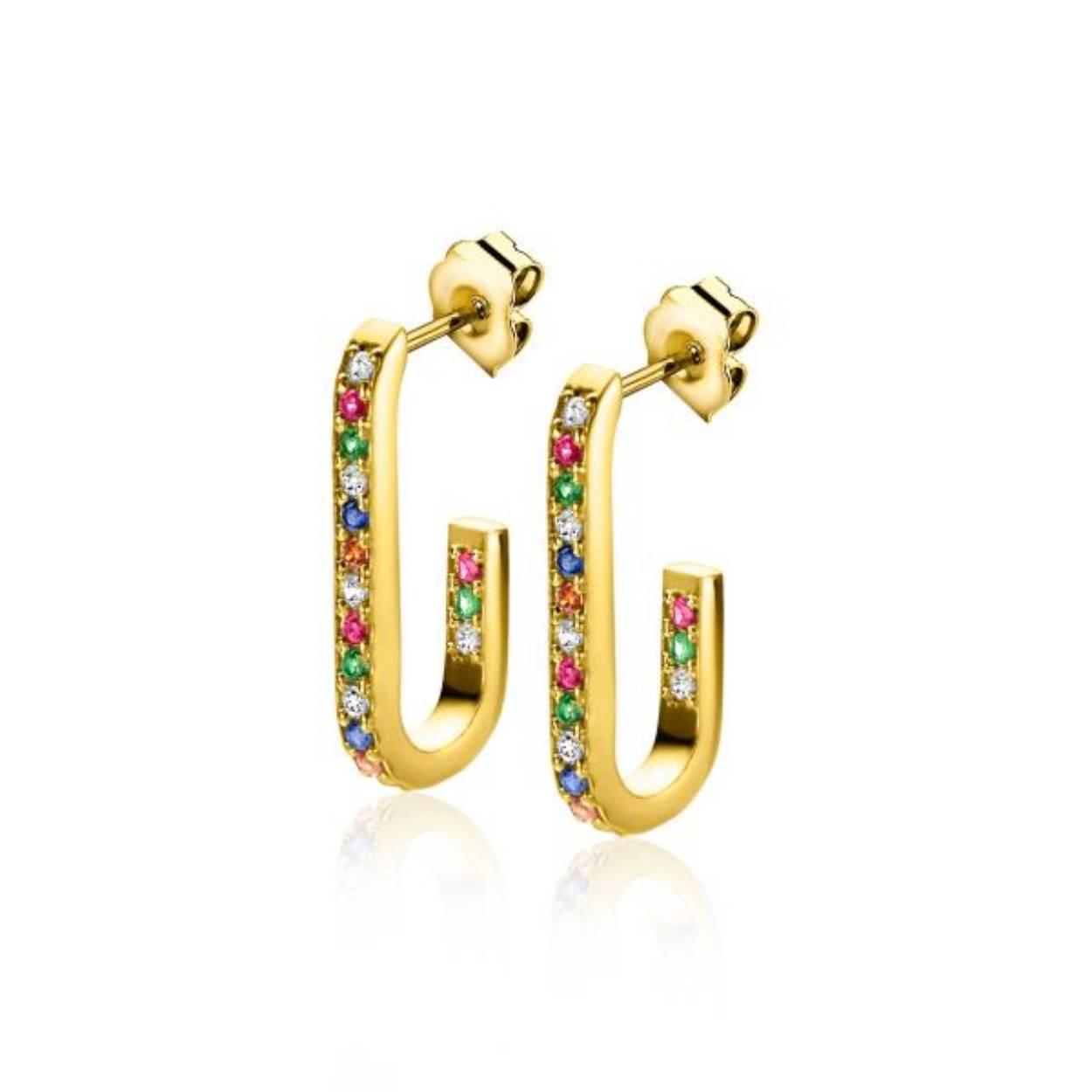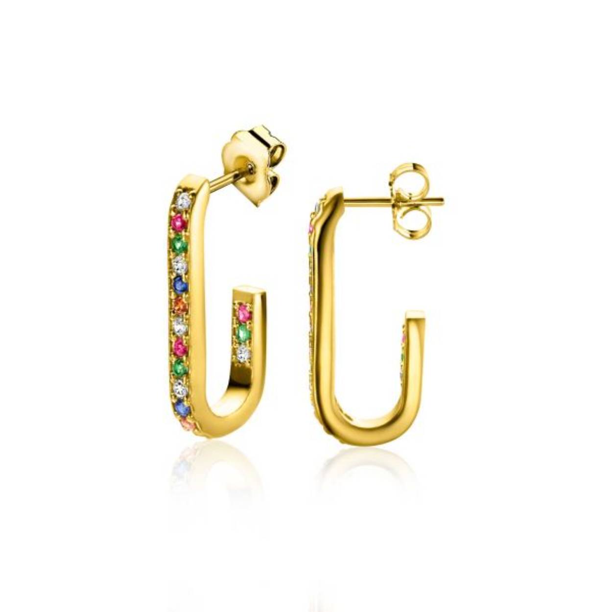 ZINZI gold plated zilveren oorstekers in ovale vorm (20mm) bezet met regenboog kleurstenen ZIO2310YMC