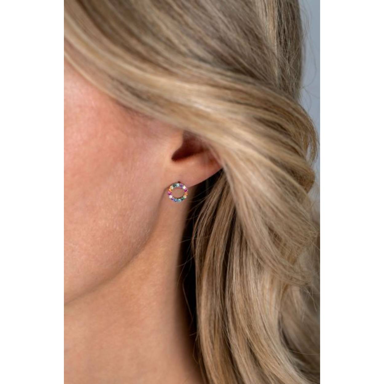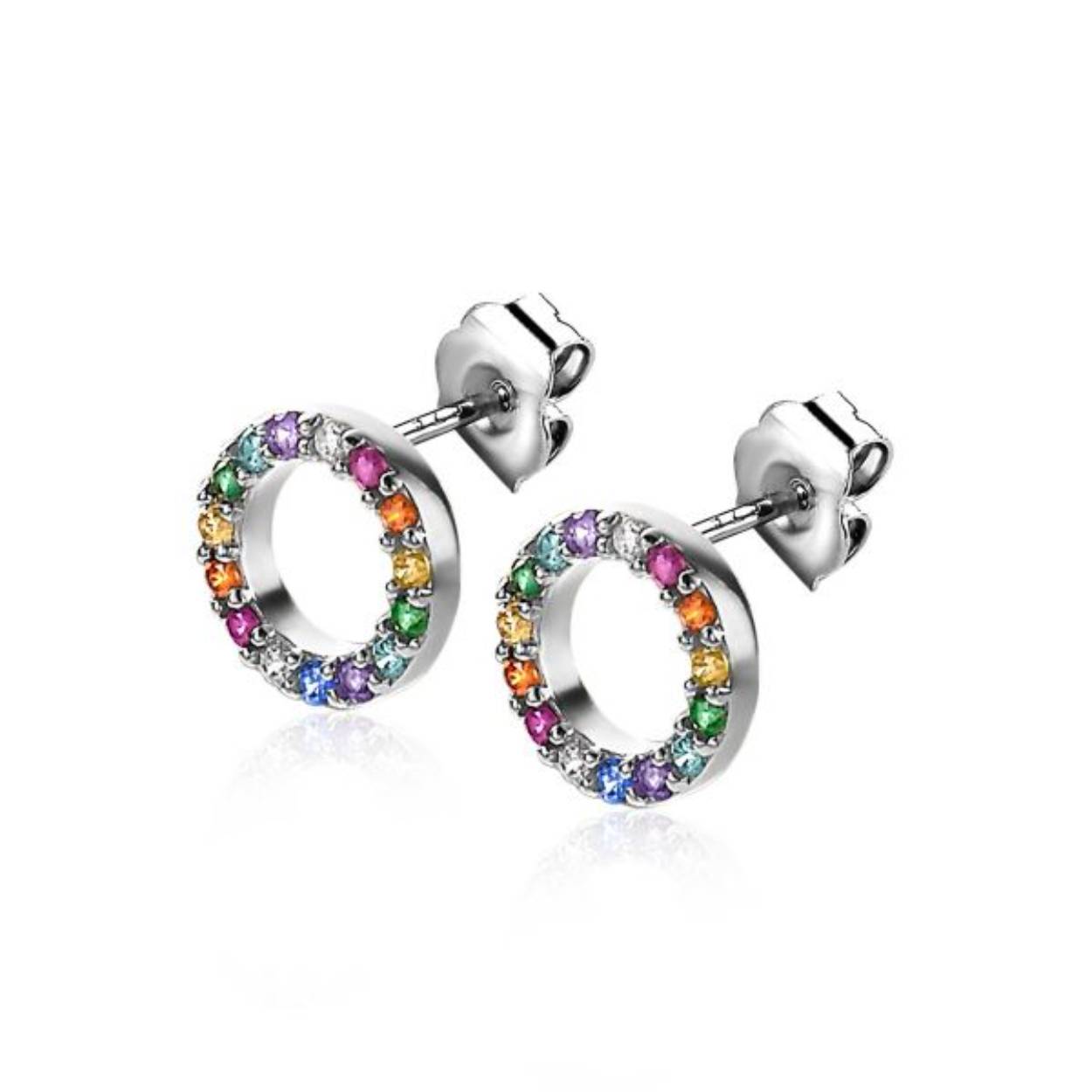 ZINZI zilveren oorknoppen 8mm bezet met regenboog kleurstenen ZIO2170Z