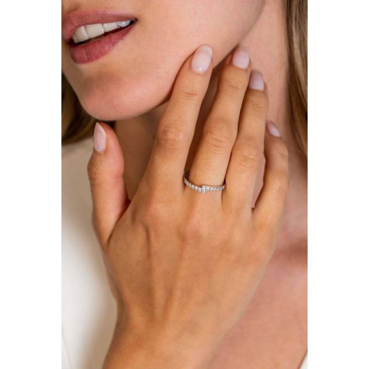 ZINZI zilveren fantasie ring, waarbij twee banen bezet met witte zirconia's naast elkaar lopen. De ring is vervaardigd van eerste gehalte zilver (925) en voorzien van een extra rodiumlaag voor een langdurige glans.